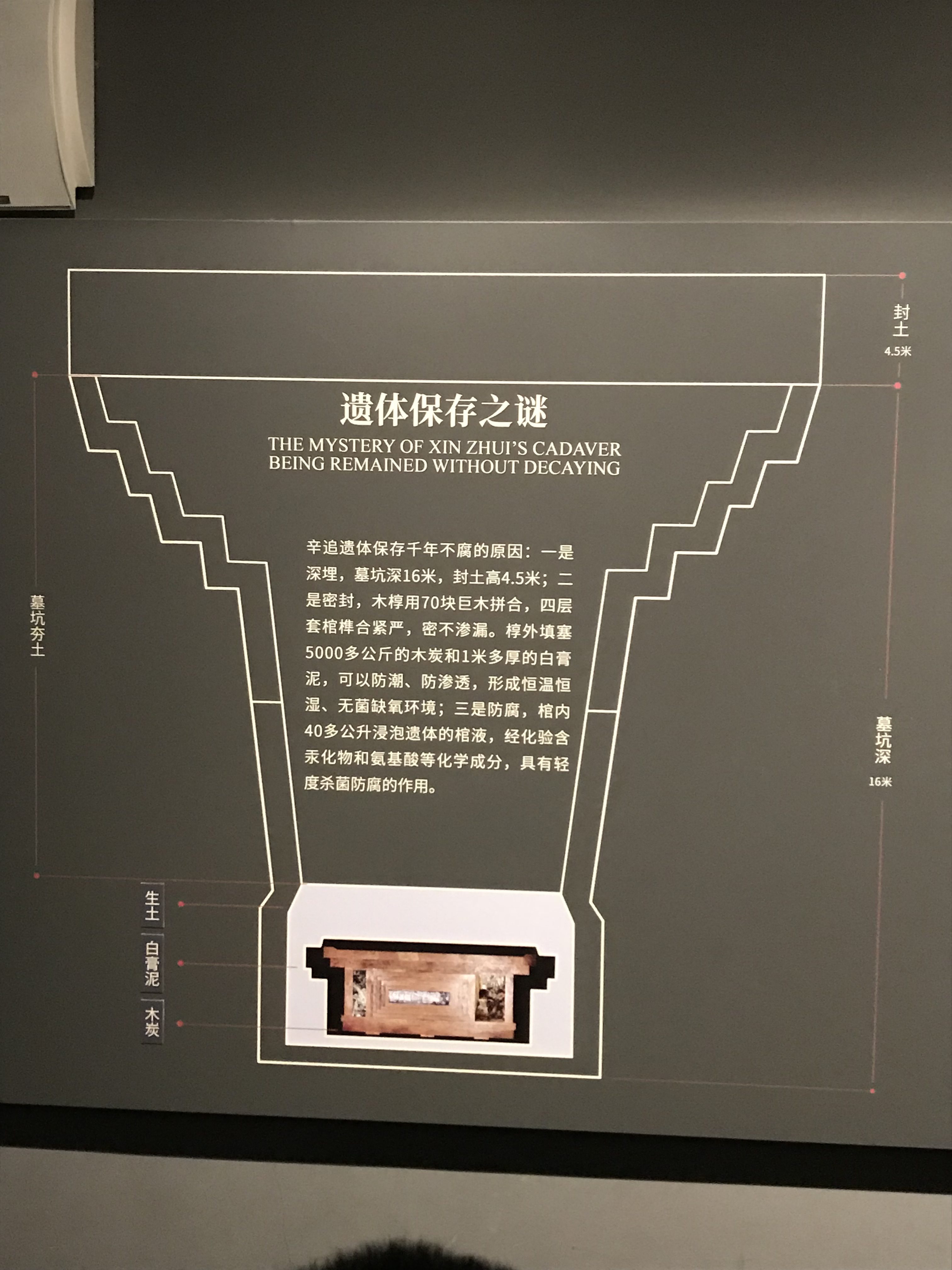 The tombs included the tomb and corpse of Xin Zhui, a 2,000-year old mummified woman who was amazingly well preserved, including flesh and organs (the picture of her won’t do justice because of her body being enclosed in glass, many feet below the viewing area).