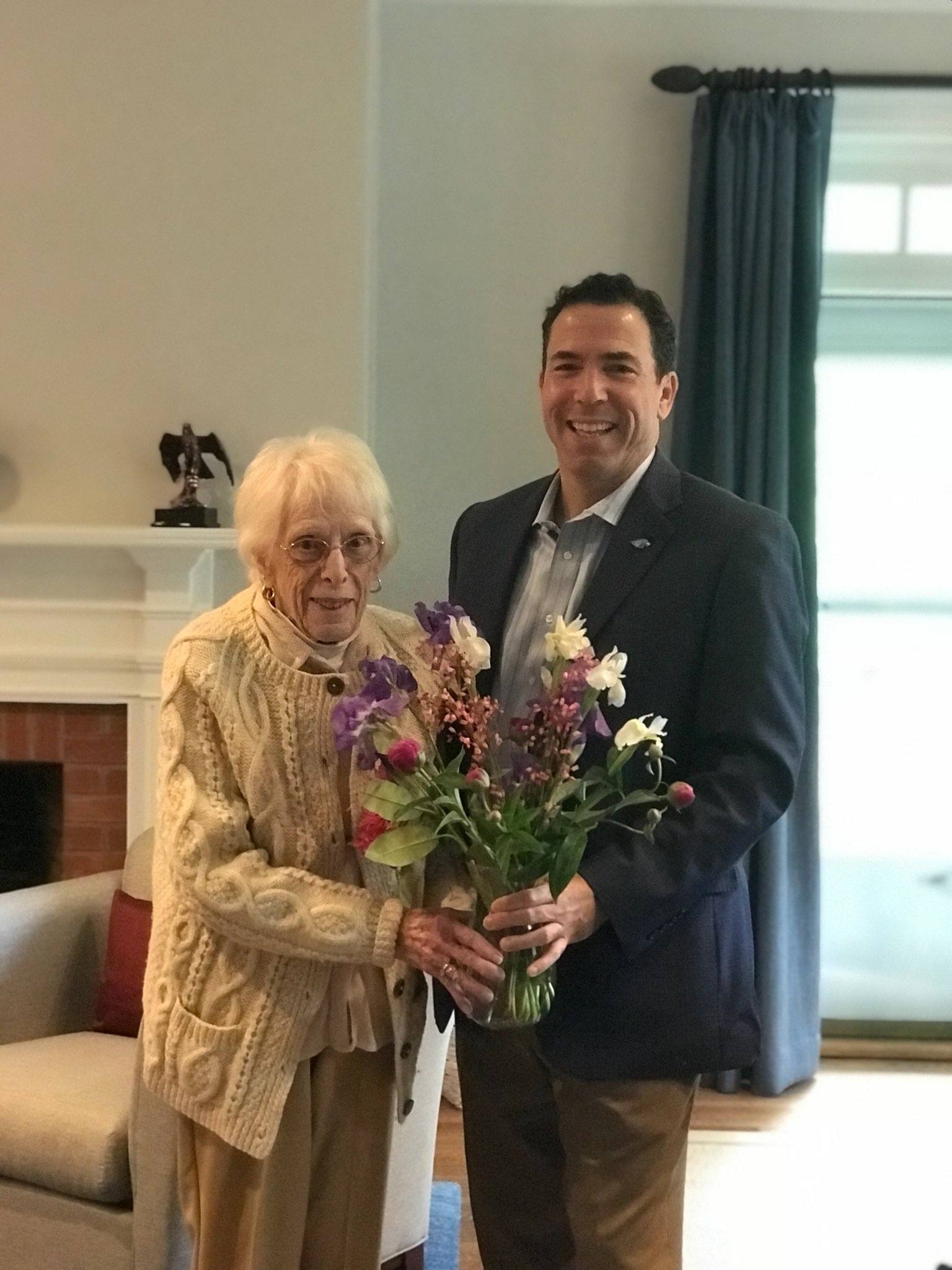 Janice Bruce didn’t attend Albertus Magnus College, but I believe she and the College share in common much more than their nine decades on the Earth. Janice’s spirit and character are full of the values that uphold this College. As the Dominican Sisters did in welcoming the neighboring children to the campus during the snowstorms of Janice’s childhood, Janice welcomed me through her message and visit. Her thoughtfulness extends beyond that outreach, as the pink and purple petals on my desk now attest. Today, I am again touched by graces, experienced through Janice Bruce’s actions, reminding me of the power and purpose of what it means to be a neighbor and to be part of a community.