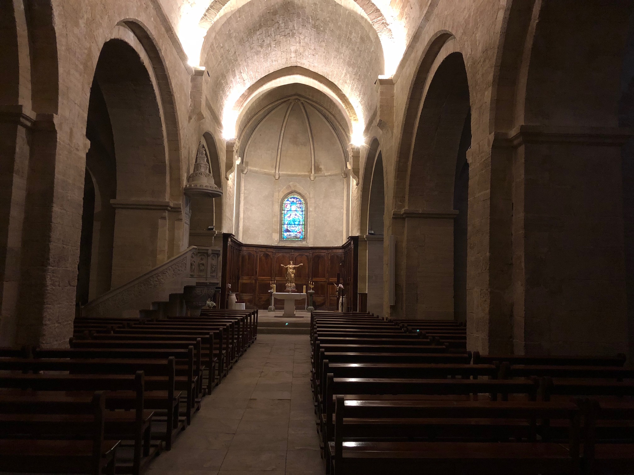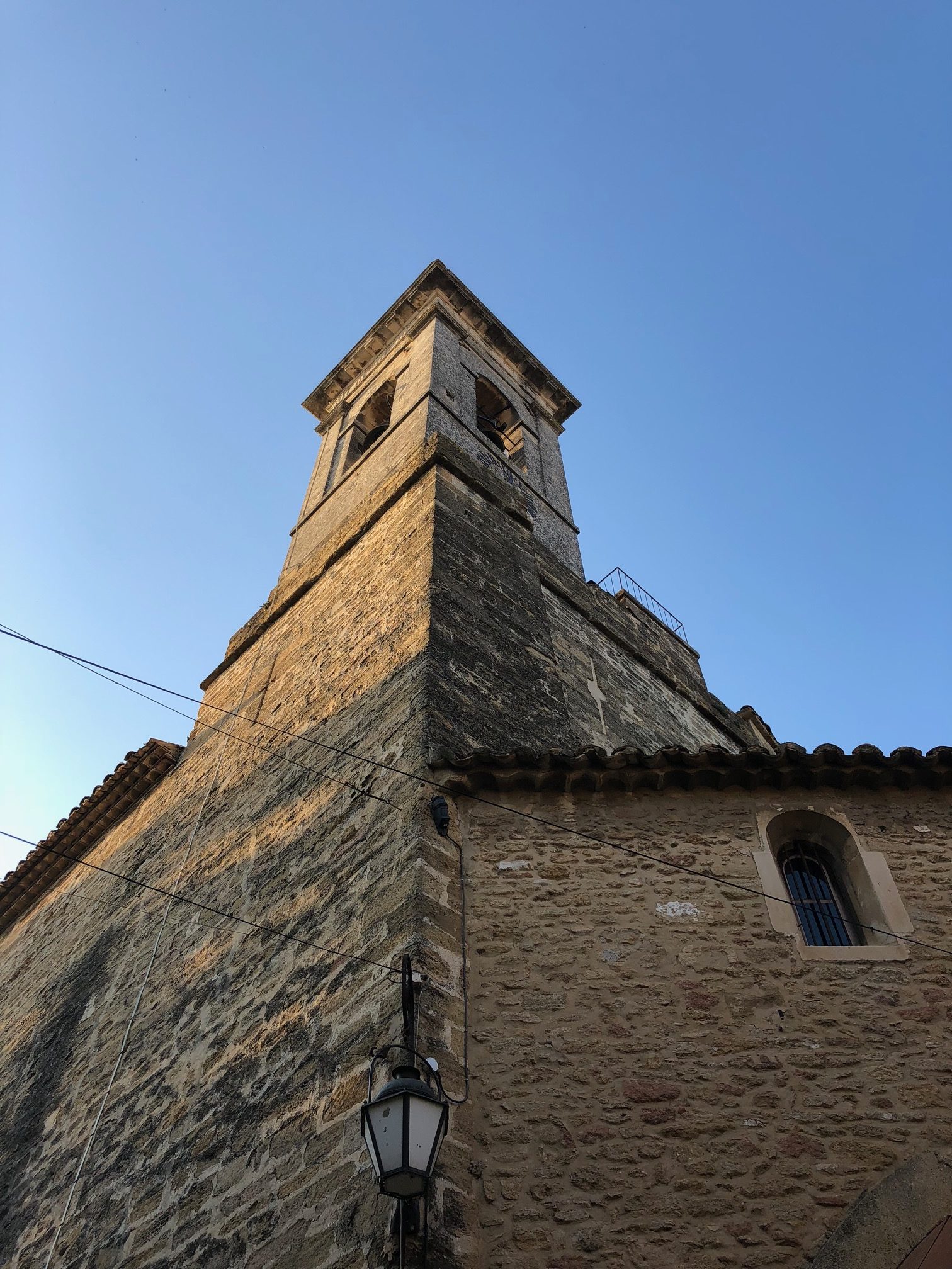 My time in Châteauneuf-du-Pape was brief, but a priority was to visit the Pope’s Castle ruins. While walking up to see the ruins, I came upon Église Notre-Dame-de-l’Assomption, originally built in the 11th century. The church is beautiful and its tower bells still ring throughout the village at each hour.