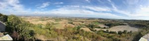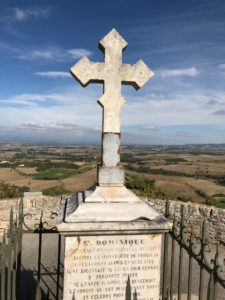 Last night, after traveling to France from different parts of the United States, the Dominican college presidents and others making the pilgrimage came together for the first time, sharing dinner and conversation, full of anticipation for the week’s experiences. This morning we began with a classroom session, during which we were given an overview of the educational experiences that our Dominican colleges’ faculty, staff, and students who travel each summer to Fanjeaux have as they immerse themselves in learning about the history of the Dominican order. In my first year at Albertus, I heard from numerous faculty and students who made the trip, about how impactful and positive the experience was. I’ve been anxious to learn more ever since. We also spent morning time with prayer, reflections, and an overview of the week’s itinerary. After lunch, we departed to spend the full afternoon in the village of Fanjeaux.Fanjeaux is a small hilltop village that sits about 1,100 feet above sea level, with stunning views of the valleys, farms, and villages below and stretching for miles into the distance. St Dominic arrived in Fanjeaux in 1206.  In those first years of Dominic being in Fanjeaux, the area was inhabited by the heretic Cathars. This blog post would never do justice to the significant history of the relationship between the Cathars and Dominic and how the Order of Preachers took shape during his decade or so in the Fanjeaux area, so I won’t try to shorten it for inclusion. What I will address are the highlights of the places we visited while walking through Fanjeaux and wandering down and over the hills to the Prouilhe Monastery.