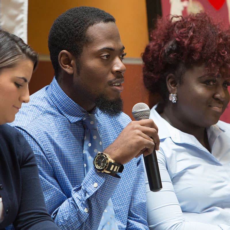 Kobey Smith ’20 presenting at Founder’s Day in 2017.