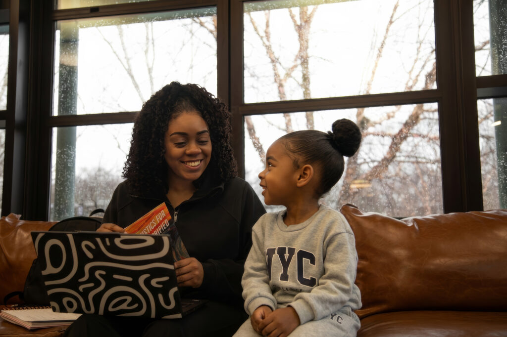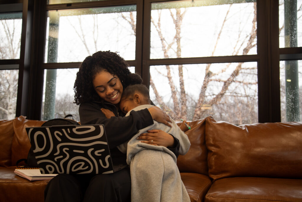 “I love that they get to witness me actually going to school and that they’re here during this part of my life because it influences them,” Smith said. “My 10-year-old, she gets homework. She sees me sitting down, studying. It makes her want to get in the same mood and sit down and study and read.”